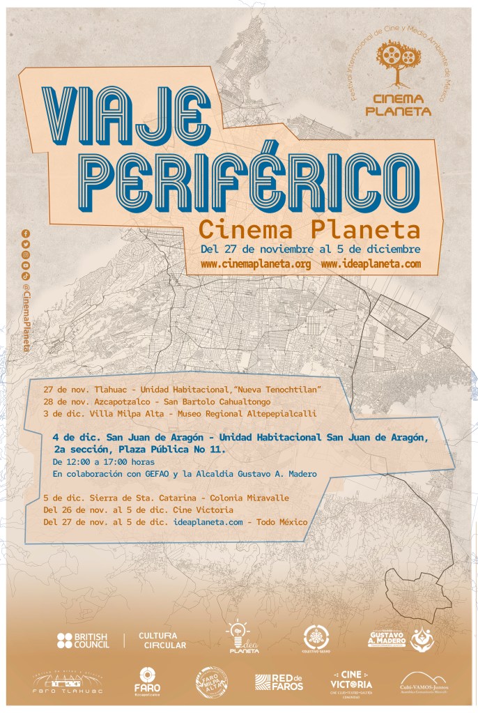 Viaje Periférico. Cortos British Council-CinemaPlaneta-Alcadía Gustavo A. Madero- ColectivoGefao. 27 de Noviembre al 5 de Diciembre. Plaza 11, UH San Juan de Aragón 2a.